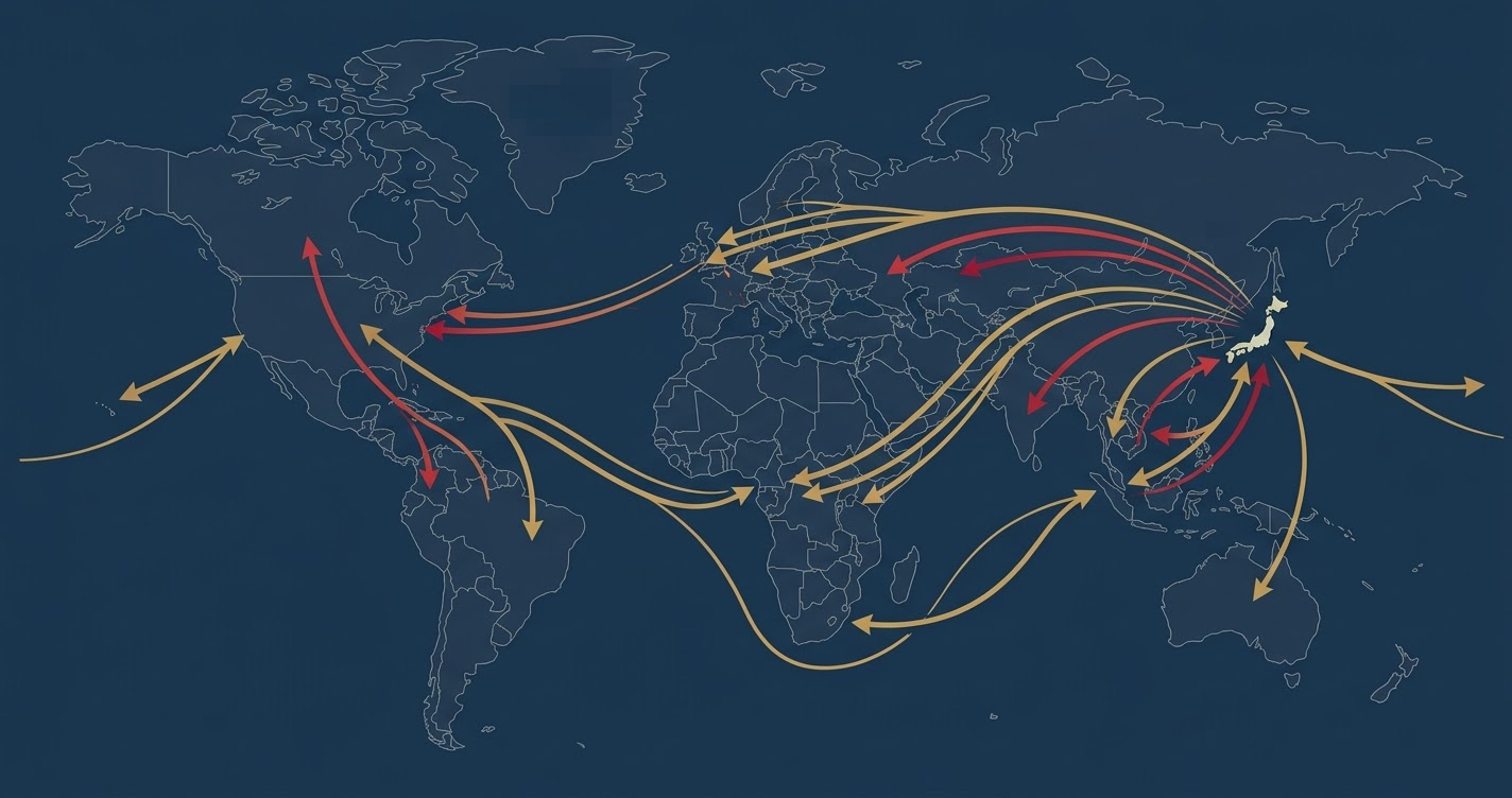 Japan's post-war economic miracle was built on a simple formula: import raw materials, add sophisticated engineering, export finished products at a premium [2]. Electronics, automobiles, precision machinery — Japan became the workshop of the world before China took that title.